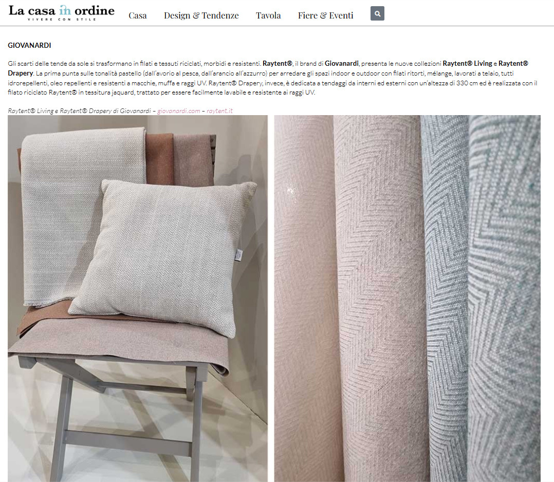 Heimtextil 2024 – the best of: the magazine “La Casa in Ordine” talks about the Frankfurt’s International Exhibition of textile and contract held from the 9th to the 12th of January, also making a special mention for Raytent.
